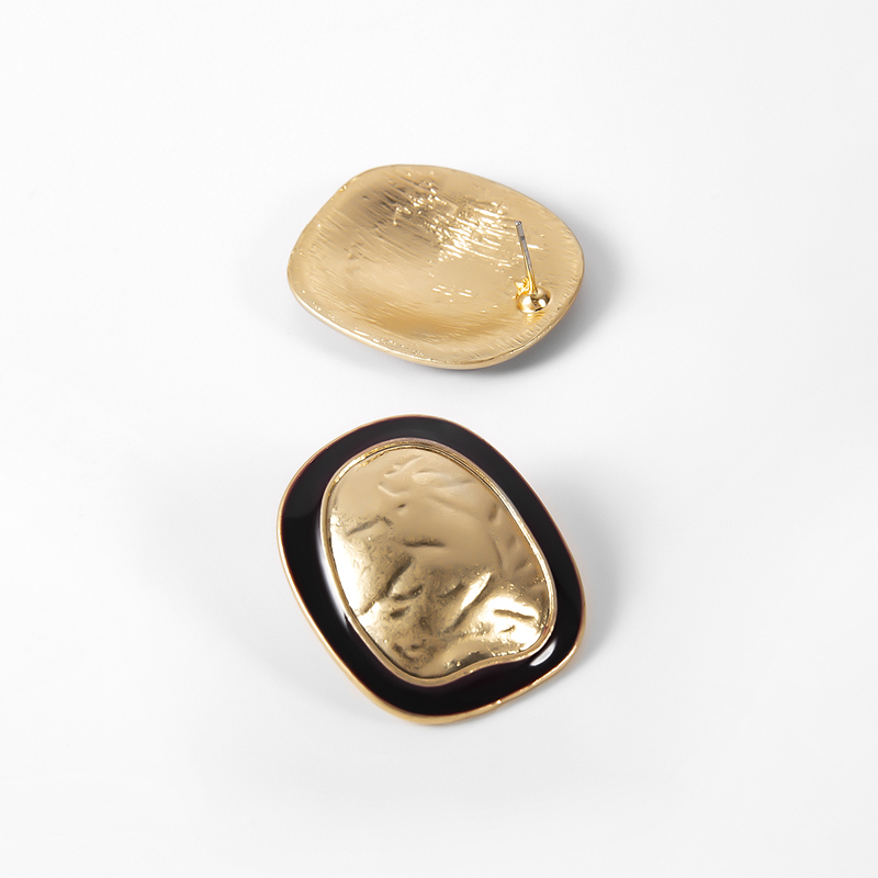 Irregular shape Coloured ear needle Female European and American Street slapped retro metal enamel drop oil rugged texture textured ear decoration