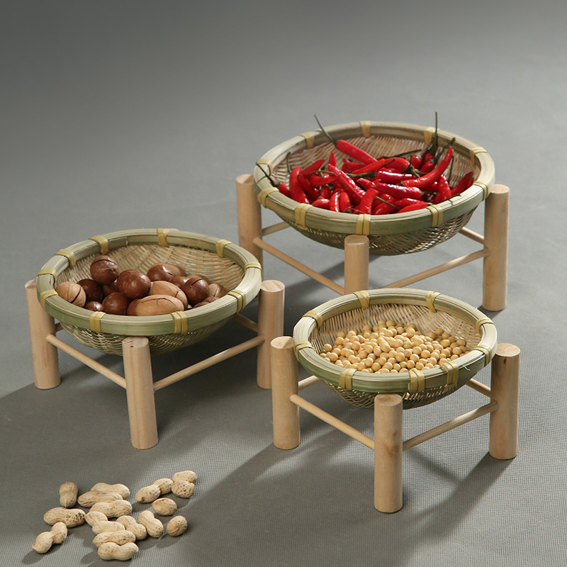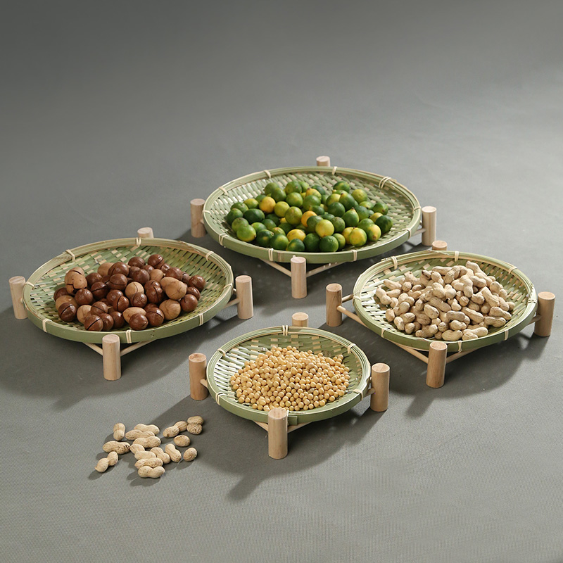 Handmade bamboo woven dried fruit plate fruit basket bamboo basket tea tray creative household bamboo basket storage basket basket round dustpan