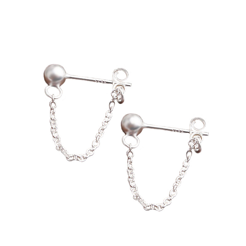 s925 sterling silver ear pin female European and American simple fashion personality design ear chain short earrings all-match temperament earrings