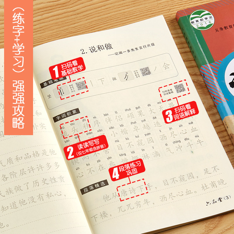 National first and second volumes of language synchronization copybook junior high school students regular script practice calligraphy writing class practice copybook 2019 people's education version 7th grade