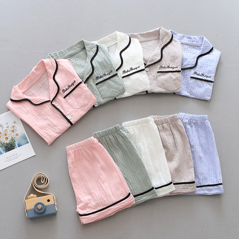 Broken Yard clear cabin children pyjamas summer thin boy pure cotton air conditioning short sleeve suit girl's home clothes