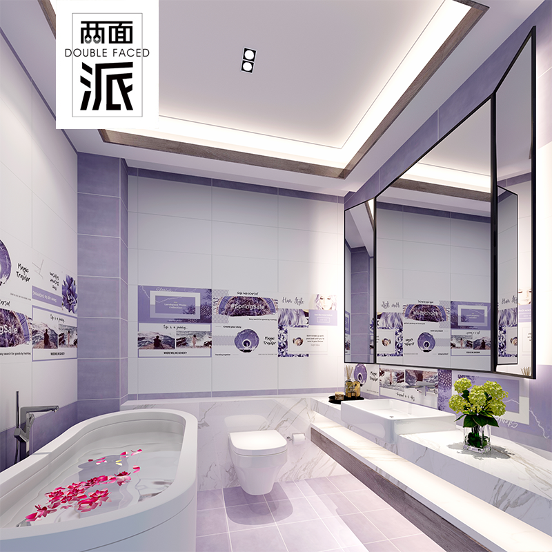 Nordic Style Porcelain Sheet Makeup Room Purple Wall Brick Mediterranean Blue Brick Kitchen Dark Blossom Brick 300x600