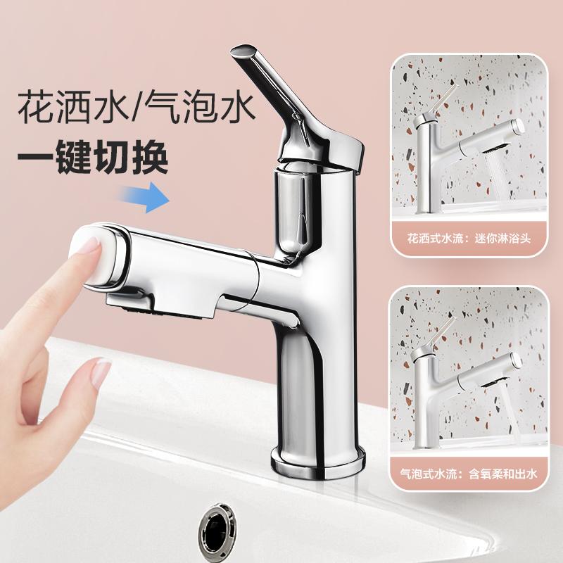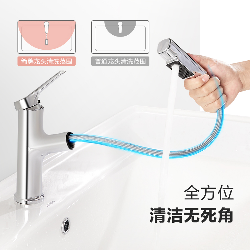 Arrow sanitary bathroom black pull tap basin cold and hot tap wash basin single hole all-copper faucet