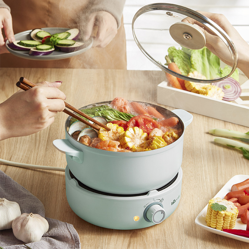Small Bear Quick cooking pot multifunction Home Two-style student Dormitory Small Electric Hot Fondue Mini Electric Pan