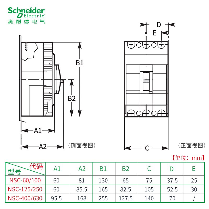 Schneider plastic shell breaker NSC60E250S 3P air switch 25A160A100A125A400A630A