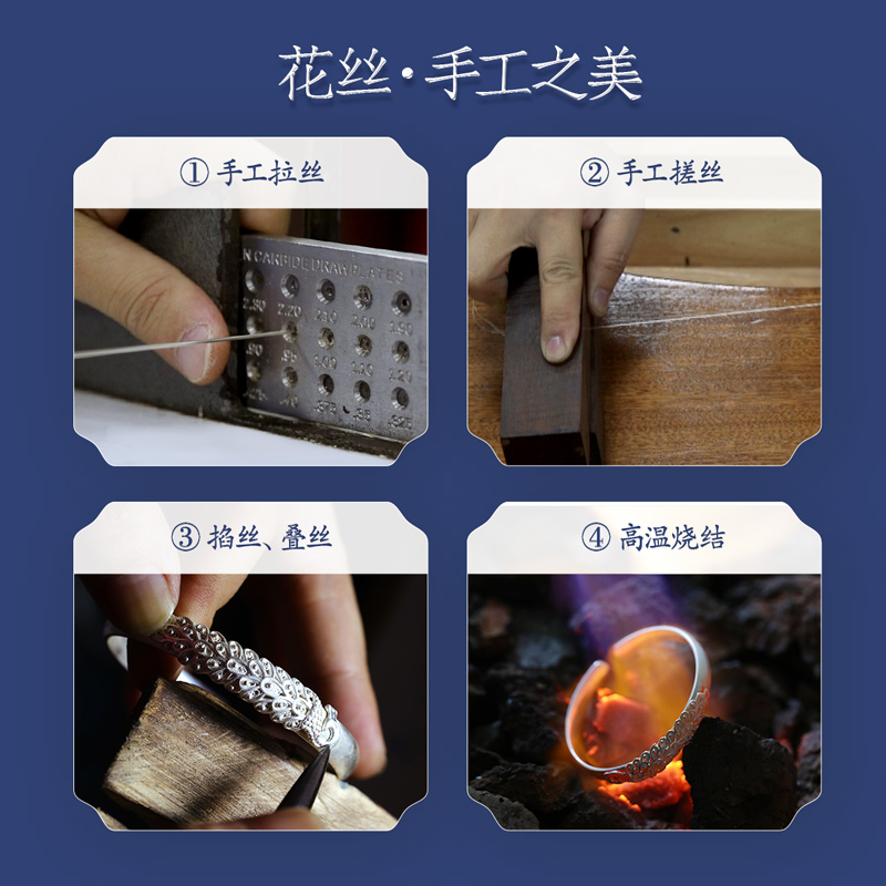 Centuries-old Baocheng Peacock silk silver bracelet female pure silver ethnic wind foot silver opening solid ancient method to pass on silver bracelet-Taobao