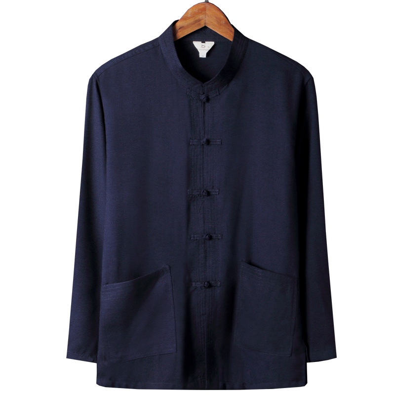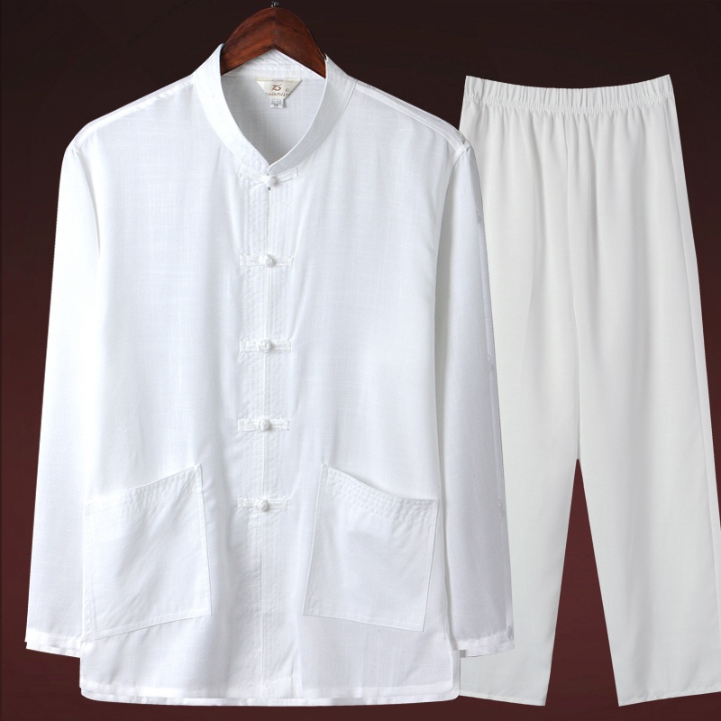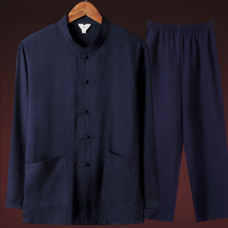 China Wind Tang Dress Men's Clothing Thin Section Middle Aged Linen Daddy Long Sleeve Suit Cotton Numb Grandpa Clothes Spring Summer Clothing