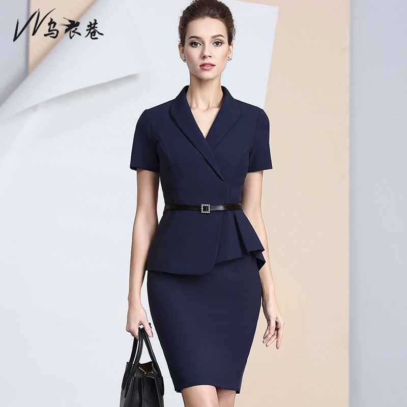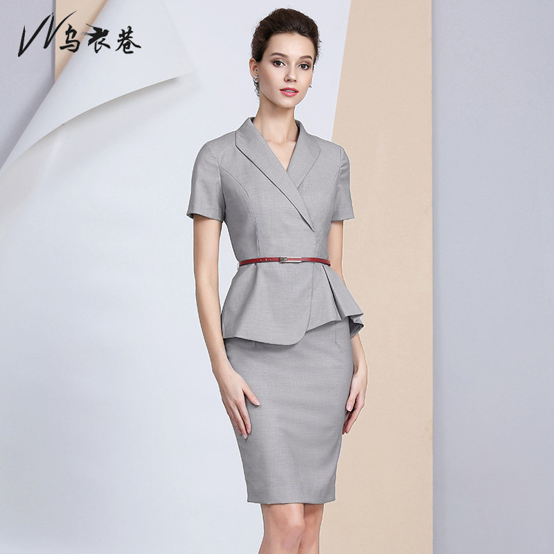 Summer fashion gray dress Work suit Femininity goddess Fan suit suit Sales hotel work clothes Short sleeves