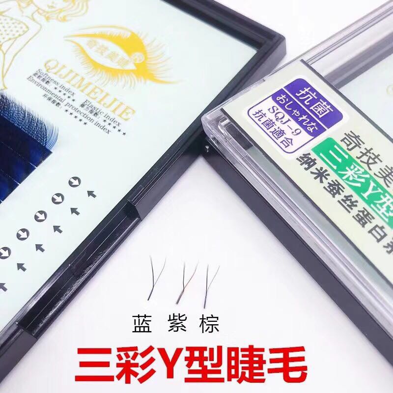 Color y-type one-second flowering grafted eyelashes mink hair love mesh braided eyelashes caramel blue purple
