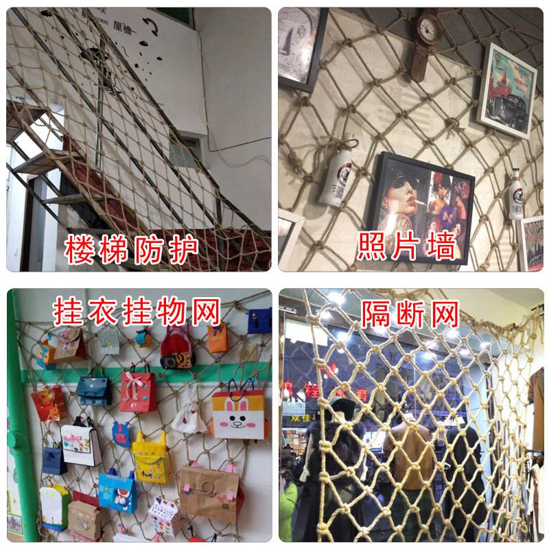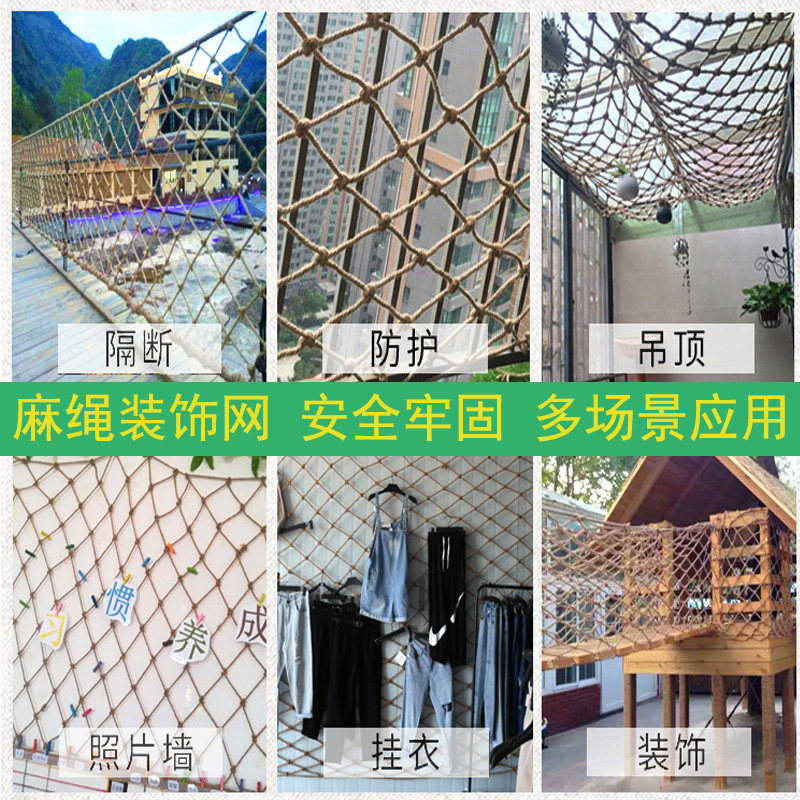 Hemp rope grid decorative net hanging ceiling net protective net hanging clothing net bar ceiling decorative net fence climbing net