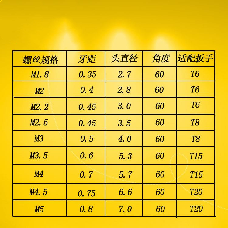 M1 8*4(diameter×total length)M2*4(diameter×total length)M2*5(diameter×total length)M2*6(diameter×total length)M2*8(diameter×total length)M2