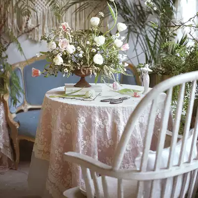 Planting love box Morey a lace tablecloth ins coffee table living room household solid color hollow white round European style
