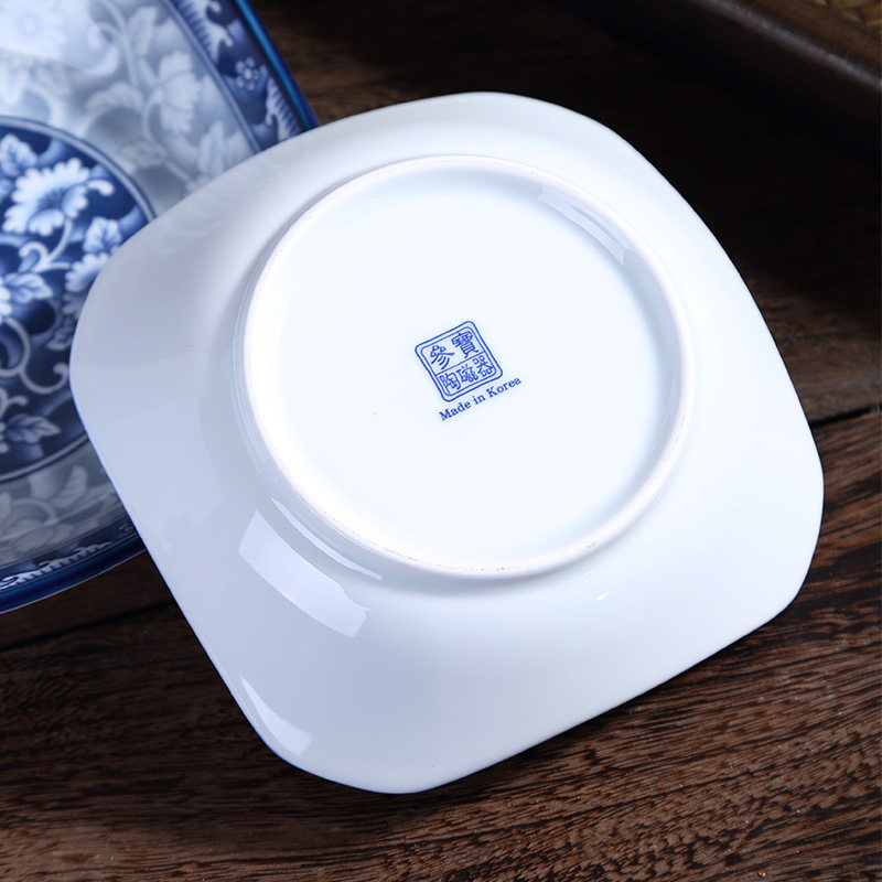 The Treasure Ceramic Ware Korea Import Deep Disc dinner plate Green Flower Porcelain Ceramic Plate Fruit Tray Household Disc Cutlery