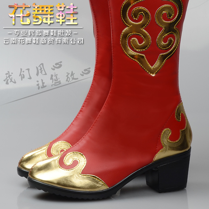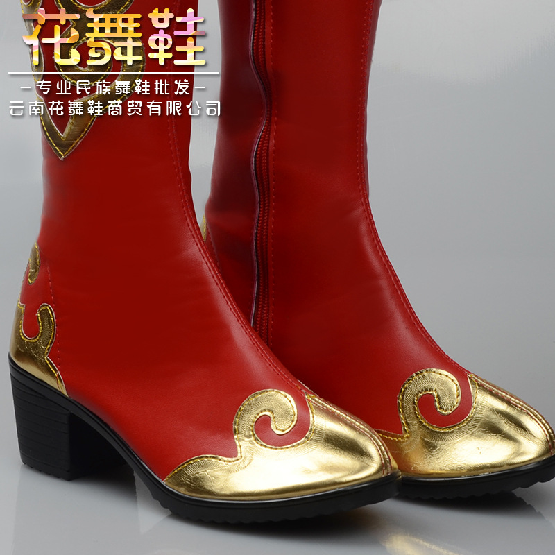 Seven colorful flowers dance Mongolian dance shoes women's high heels dance shoes folk dance performance shoes leather material dance shoes