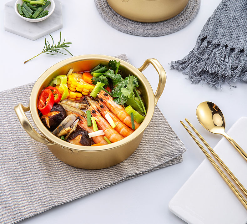 South Korean bubble noodles small copper pan Korean style aluminum pan rice wire soup pan lanoodle pan with small cooking pan with double ear small pan mesh red cooking noodle pan