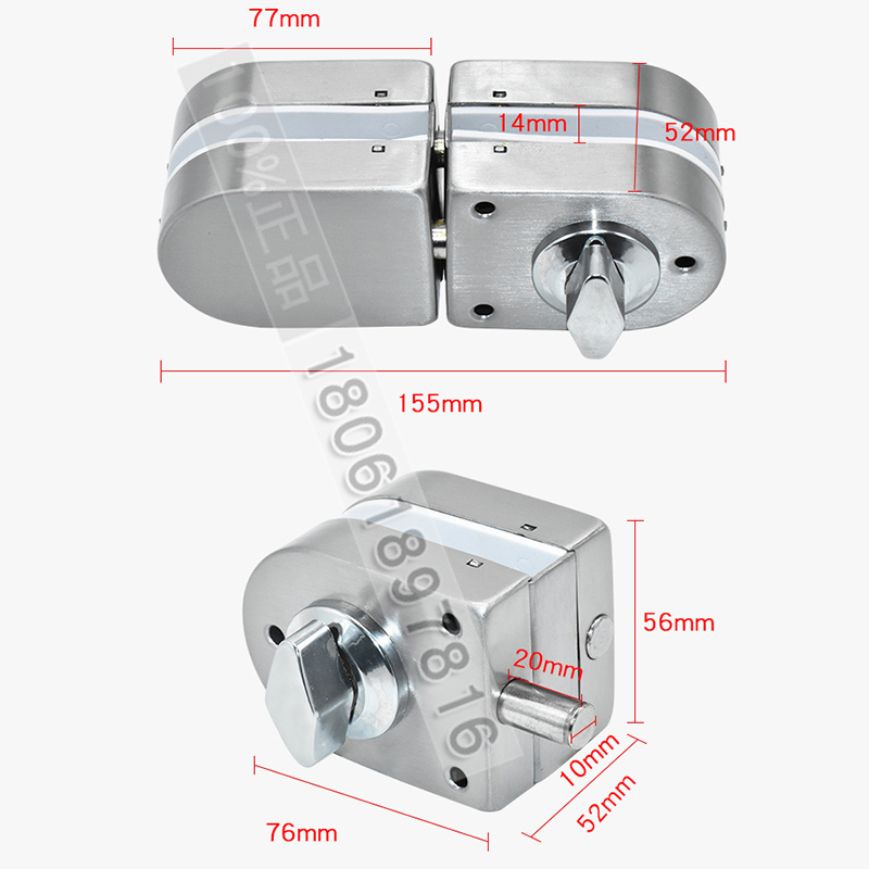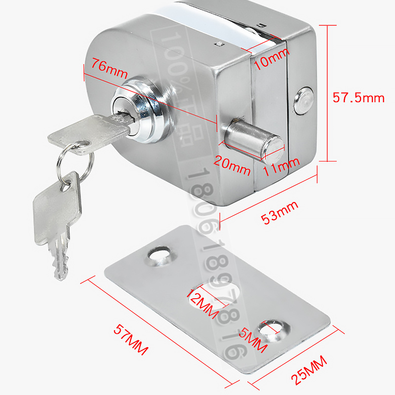 Free bore glass door lock single door double door lock inside screwed pin office Ramen 8-12mm No frame door lock