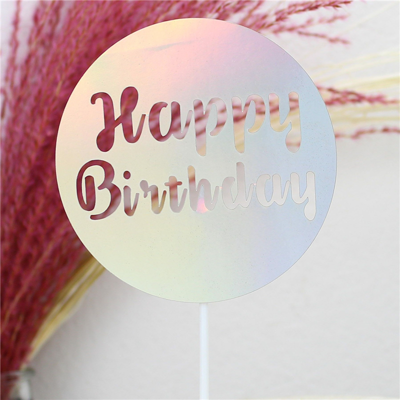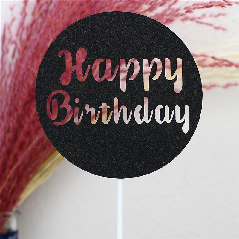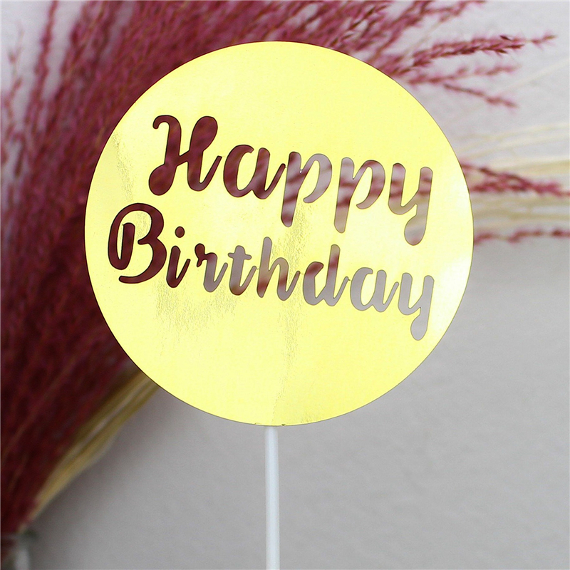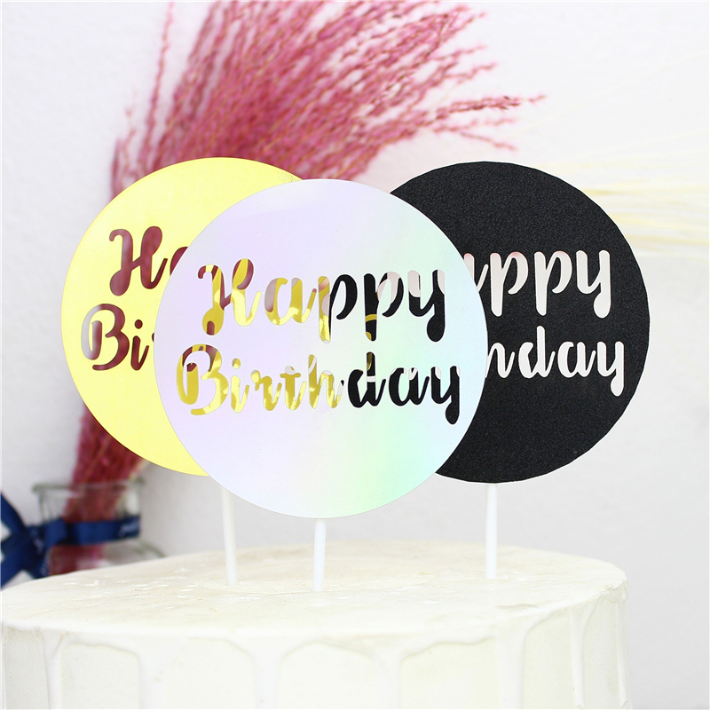Net Red Raw Day Cake Decoration Swing Accessories ROUND CARD HAPPY BIRYHDAY ENGLISH HOLLOWED-OUT BRIGHT FACE PLUGIN