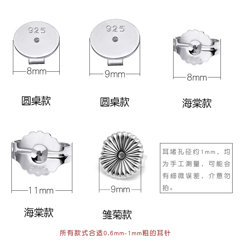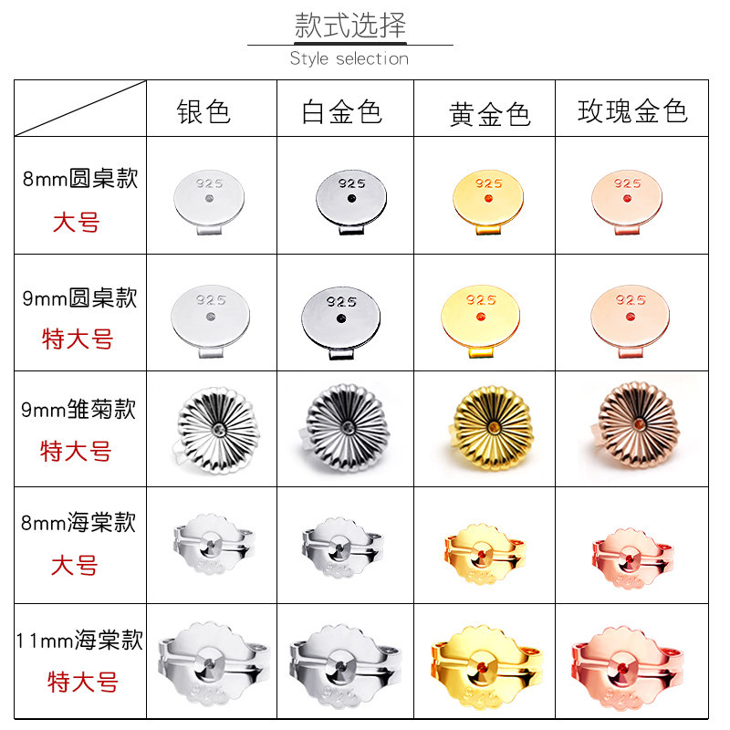 Extra large ear plug sterling silver earrings back plug 925 silver plated 18k gold earbuds clogging ear cap plug non-slip