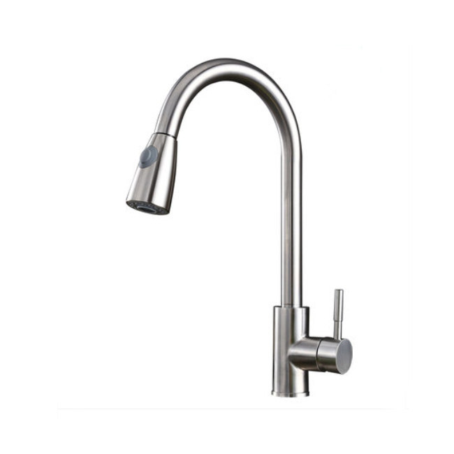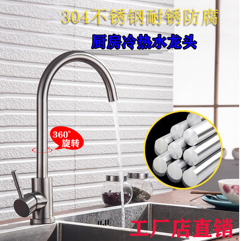 304 stainless steel pull-out cold and hot water faucet household kitchen vegetable basin basin dual-use high-bend splash-proof 360 rotation