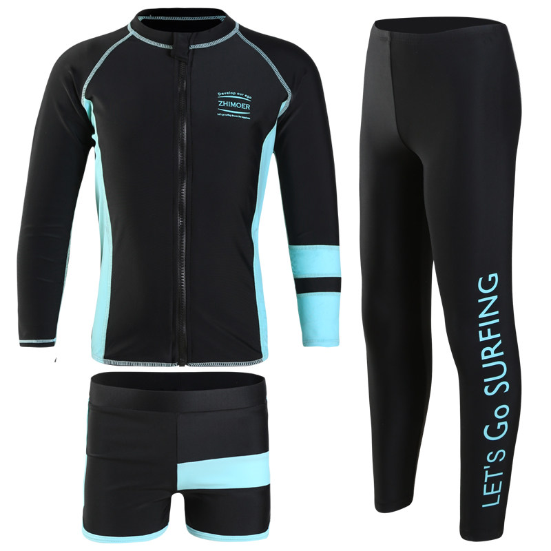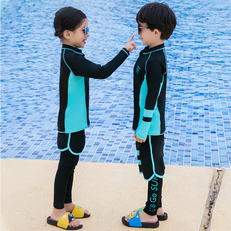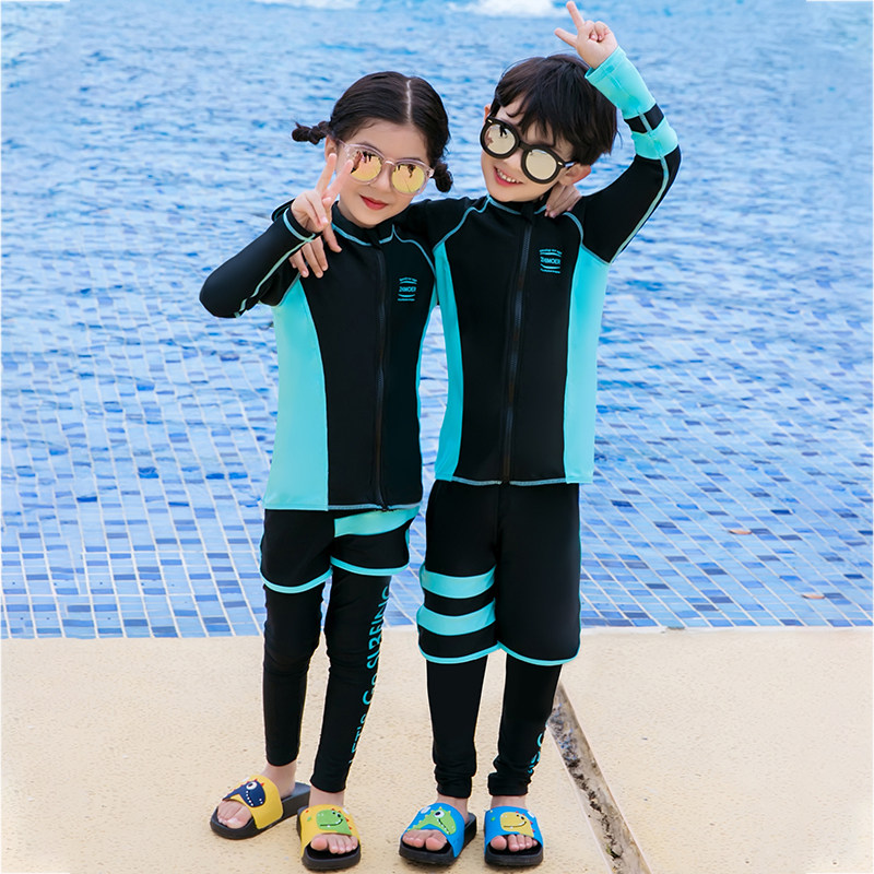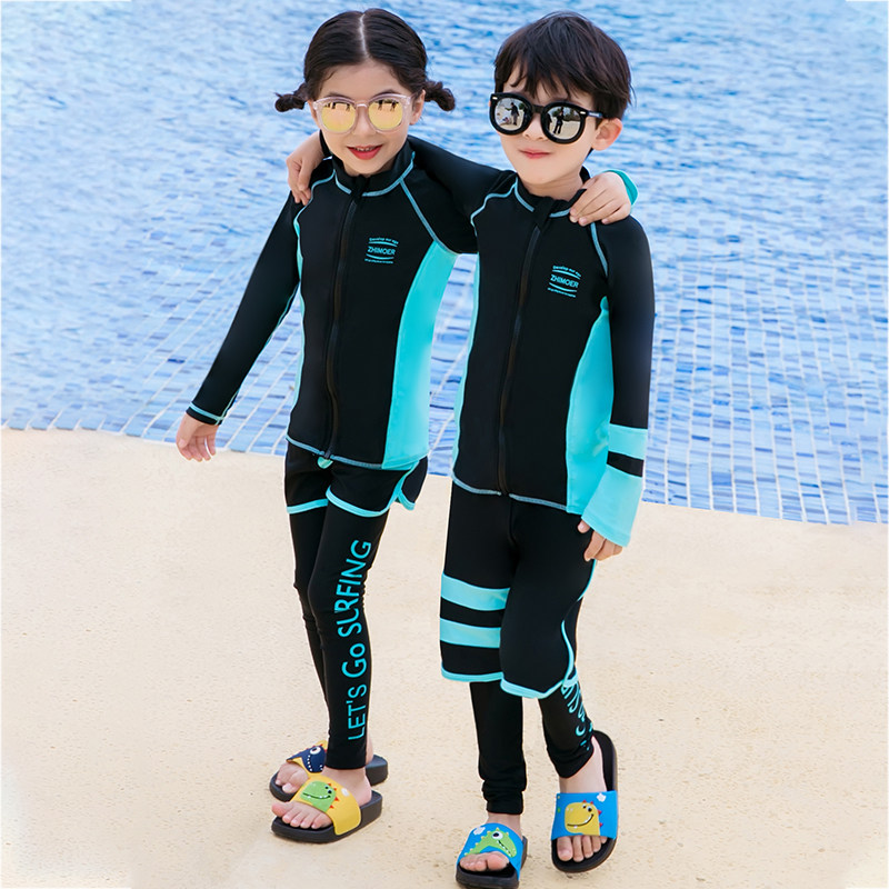 New children's boy swimsuit split CUHK children's zipper three sets of sunscreen long sleeve girl diving suit with jellyfish-Taobao