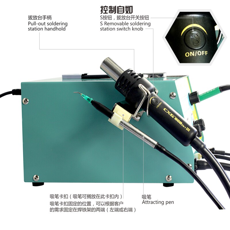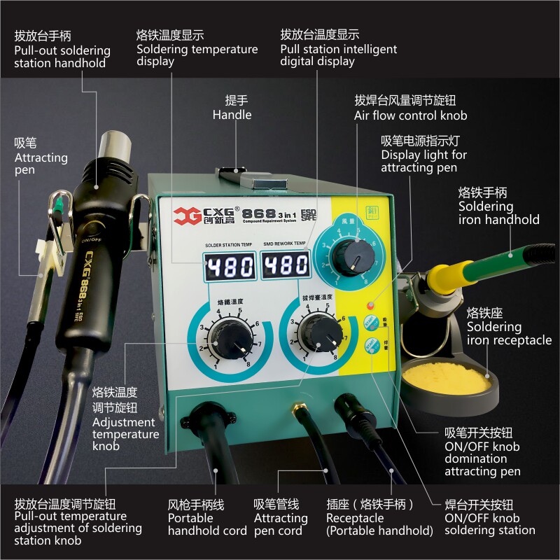 CXG record high 868 three-in-one digital display welding table adjustable warm air gun electric soldering iron vacuum suction table suction pen