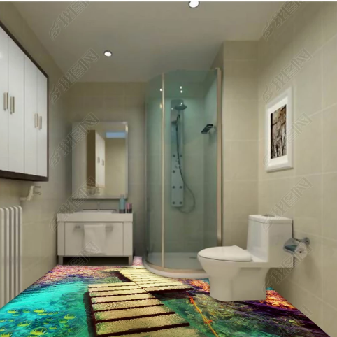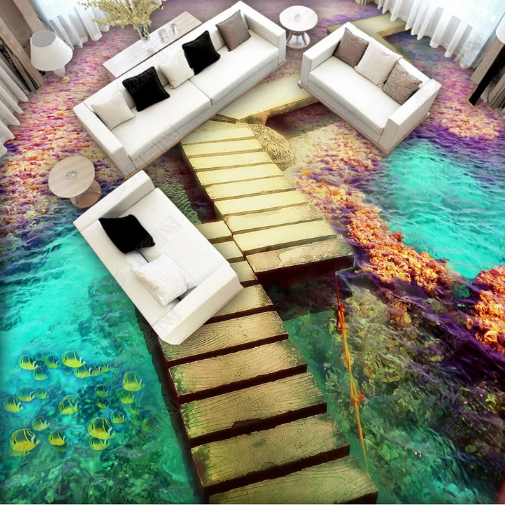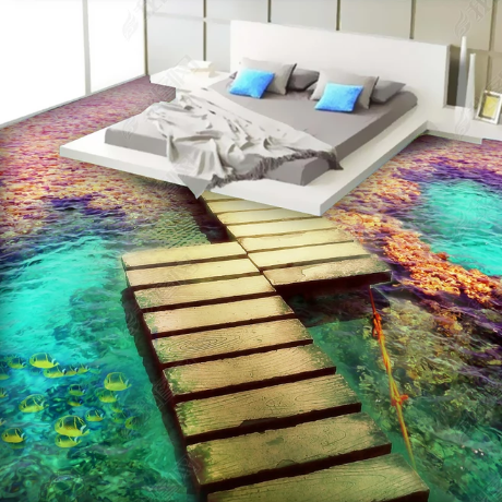 Seaside wooden bridge floor stickers Floor leather custom 3D three-dimensional floor tiles Floor decoration movable floor stickers