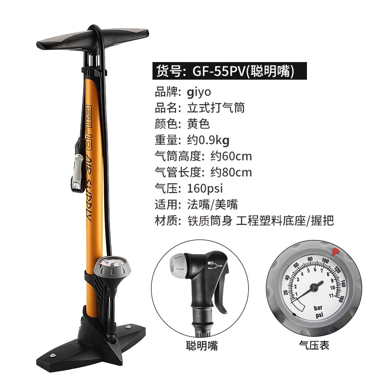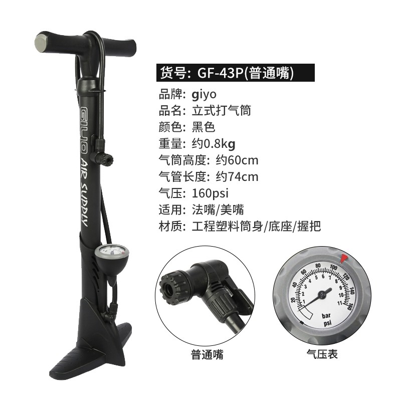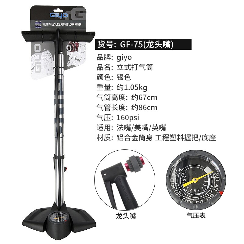 Taiwan GIYO road mountaineering bicycle electric bicycle household vertical high pressure floor pump American mouth