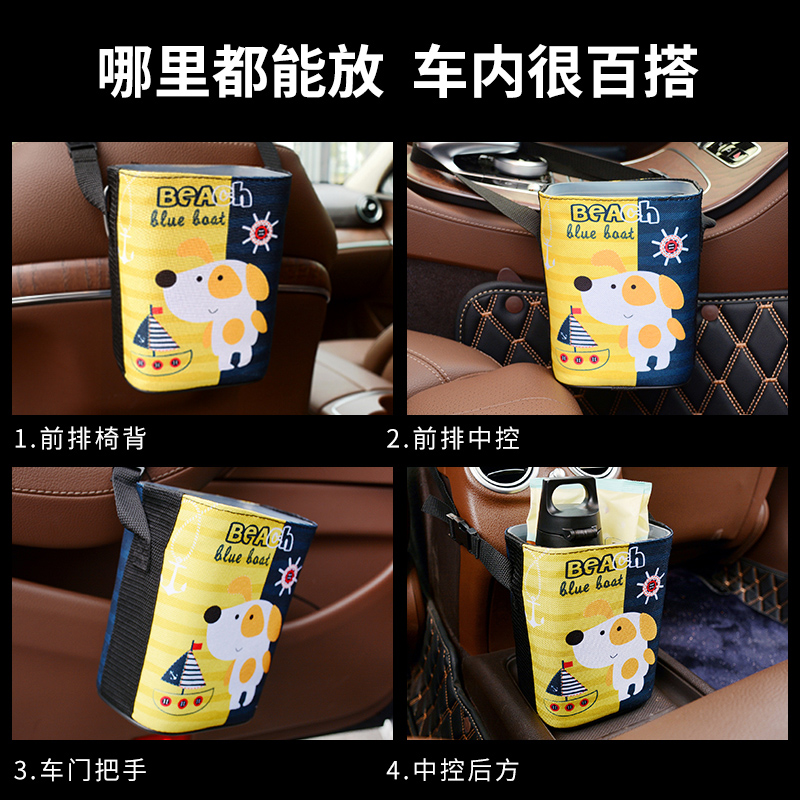 Creative cute suspension car trash cans in car cars with multi-function collection bin garbage bag