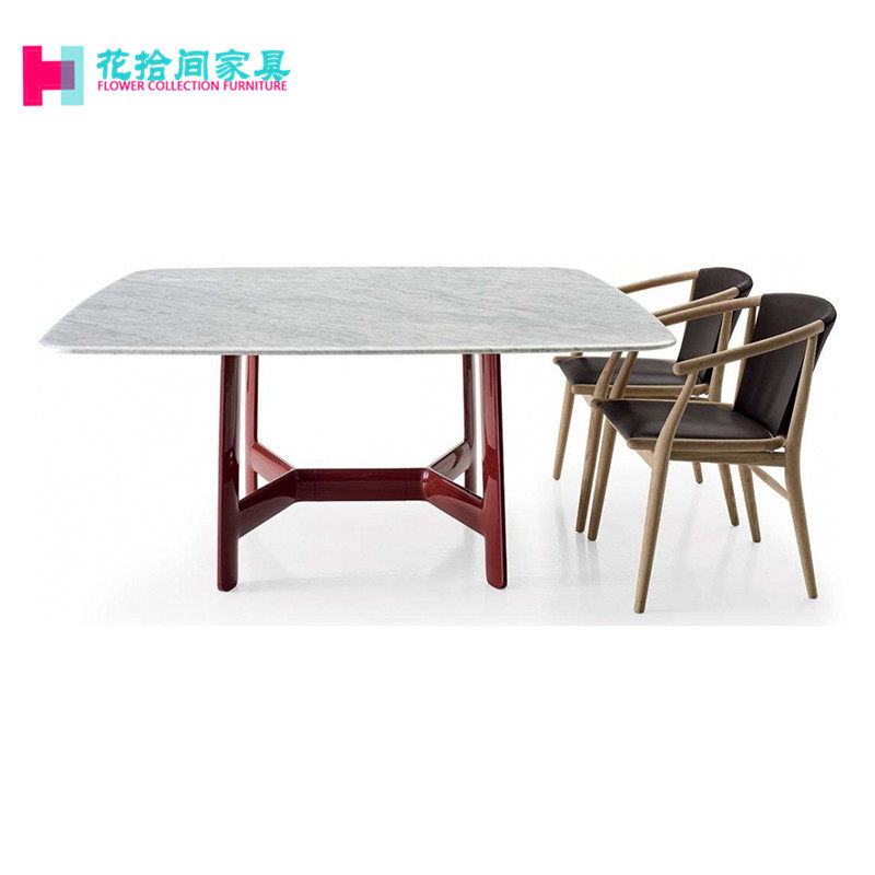 Huashijian furniture new Italian marble office high-end dining table solid wood feet household rock plate square round dining table