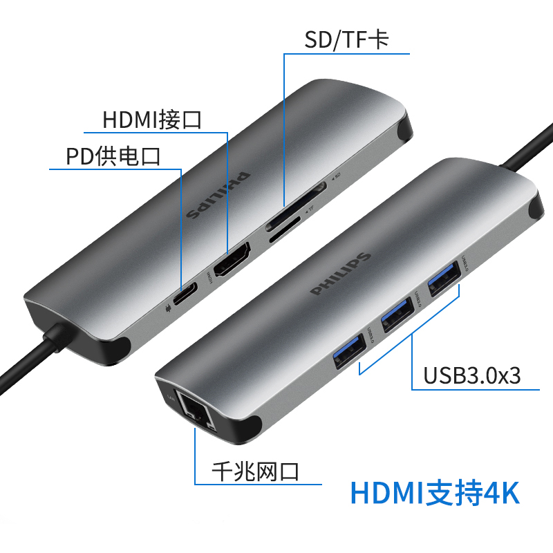 Philips typec docking station expands usb adapter HDMI multi-interface for Huawei Mate Apple computer macmini Thunderbolt 3ipadpro notebook 4s