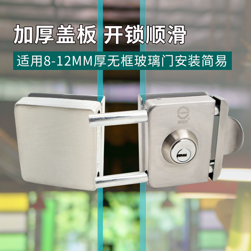Stainless steel square frameless glass door lock no-opening office sliding door lock single door double door latch lock double open