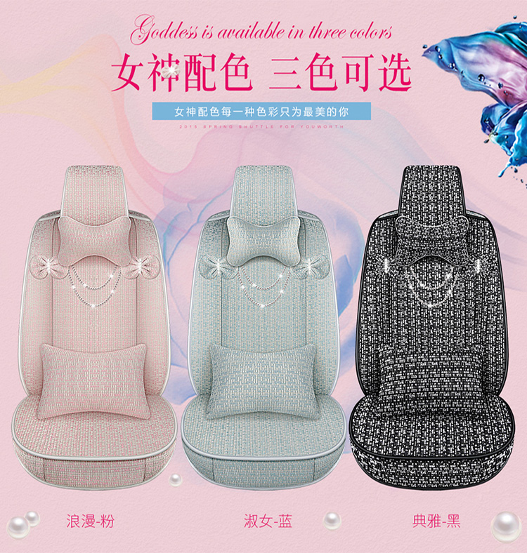 Car cushions Ins net red goddess Lovely Seasons Universal Ice Silk Seat Cushion Fashion Fabric Full Bag Seat Cover