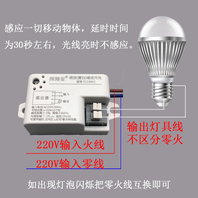 Detector 220V intelligent microwave radar induction switch module controller human body light control built-in 3802