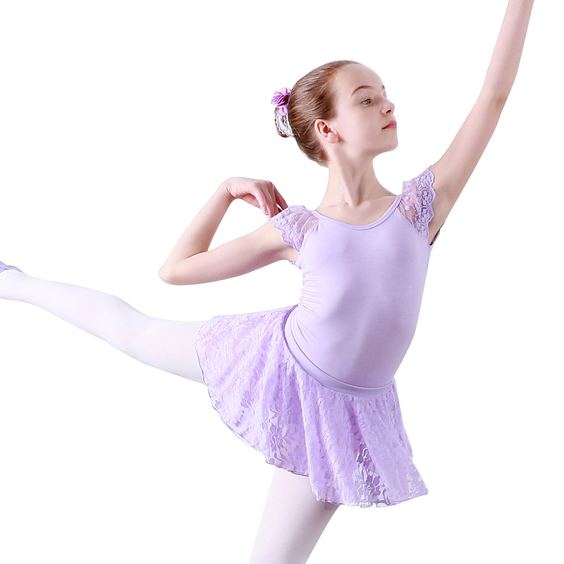 Children's dance clothes girls spring and summer short-sleeved lace children's two-piece ballet skirt training clothes dance clothes suit
