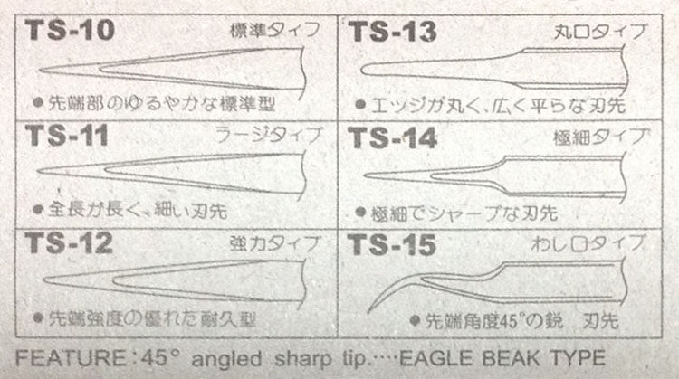 (TS-10) Standard Tip (TS-11) Slim Tip (TS-12) Durable Tip (TS-13) Round Tip (TS-14) Very Thin Tip (TS-15)