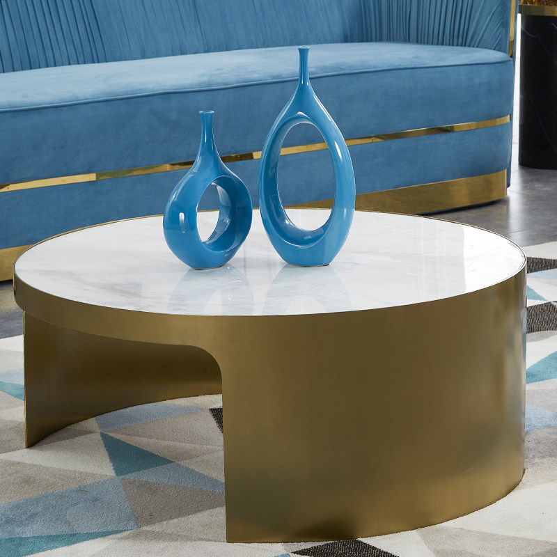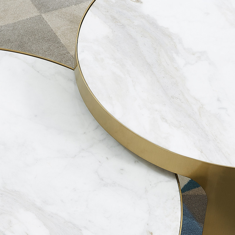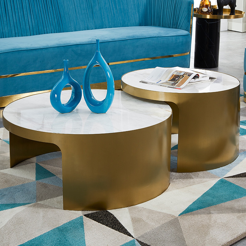 Italian light luxury marble tabletop tea several living room with a combination of stainless steel creative round tea few short tables