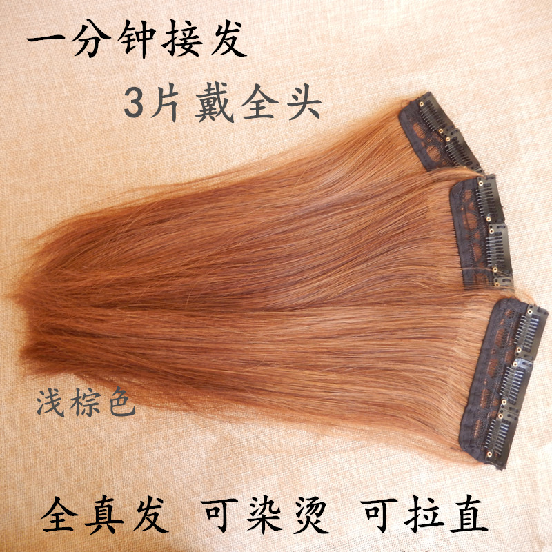 Real hair pieces 100% real hair can dye and perm women's long hair without trace hair, short hair pieces full of real hair