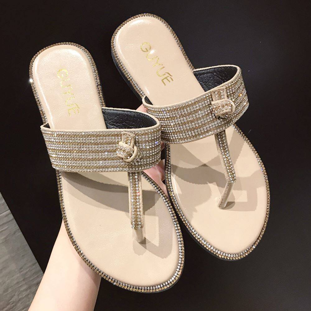 Tide brand comfortable rhinestone clip toe outer wear slippers female 2022 summer new sandals female bohemian non-slip flip-flops