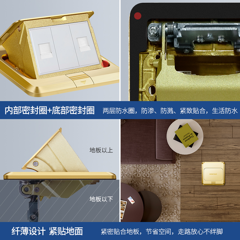 Hongyan ground socket Network cable Computer telephone ground plug All copper waterproof hidden pop-up floor socket panel