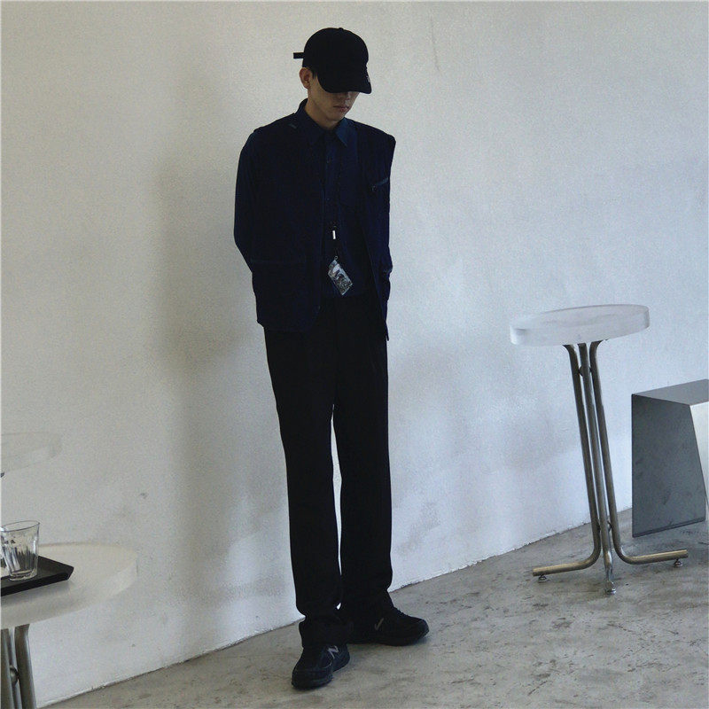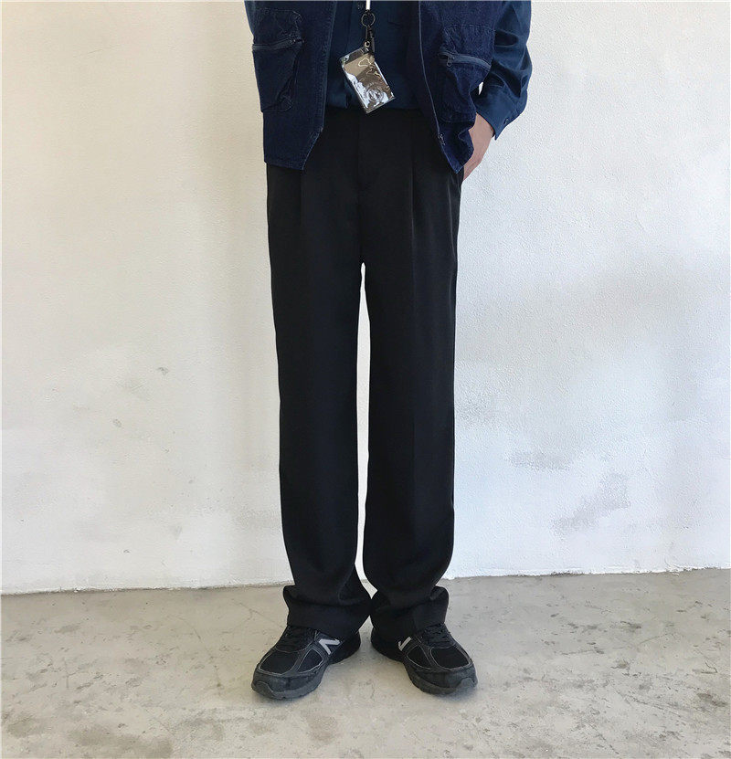 2022 Spring Summer Pendant Sensation Korean version Black Loose Straight Cylinder Tightness Waist Wide Leg Casual Western Pants Long Pants Men and women