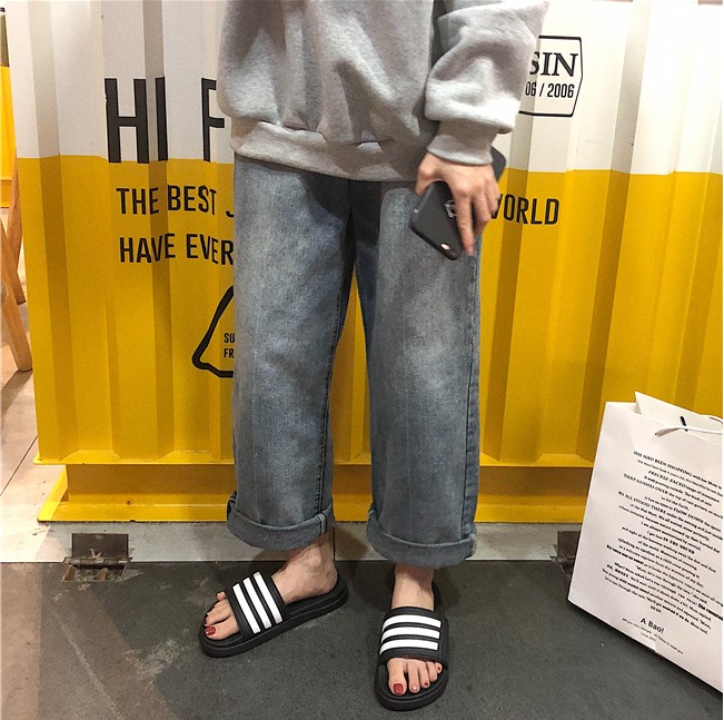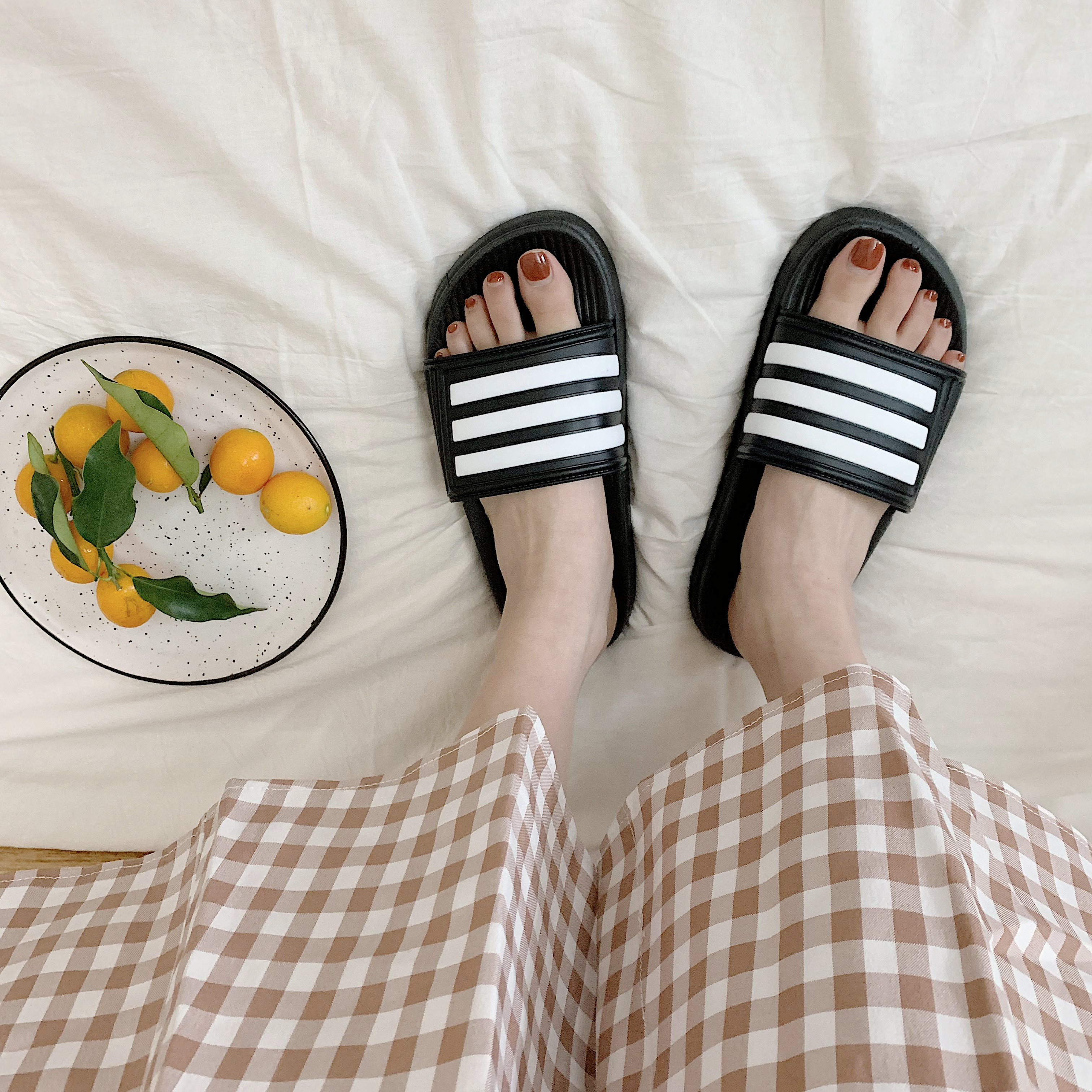 Slippers female summer wear Korean version chic wind ins 100 lap streaks harbor wind indoor anti-slip bath student cool slippers