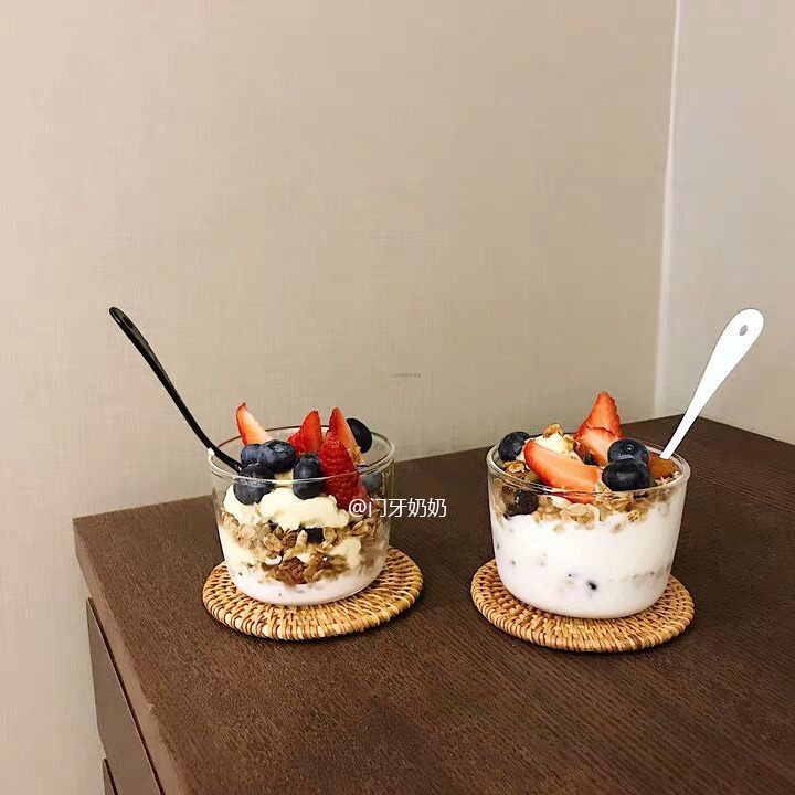 Front teeth ins Korean cafe Milkshake Yogurt Fruit cereal glass Mousse Pudding flat glass