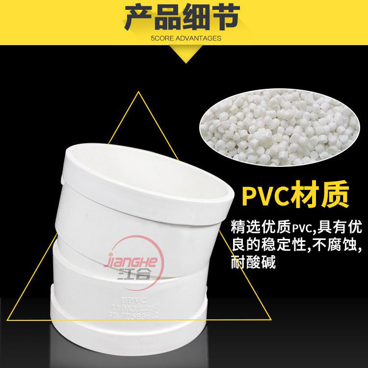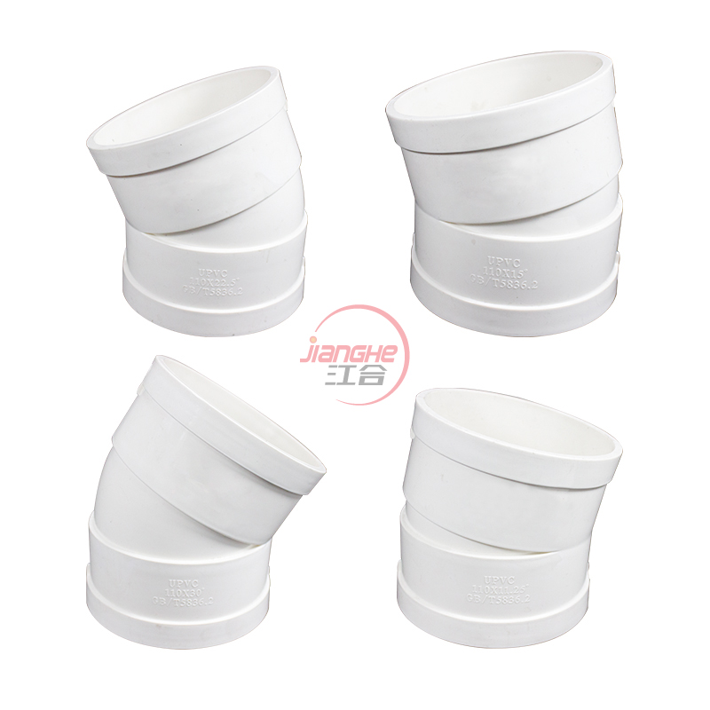 PVC slightly biased elbow 75 110 drain pipe 45 accessories 50 rotary joint 15 degrees 11 25 22 5 30 ° 60