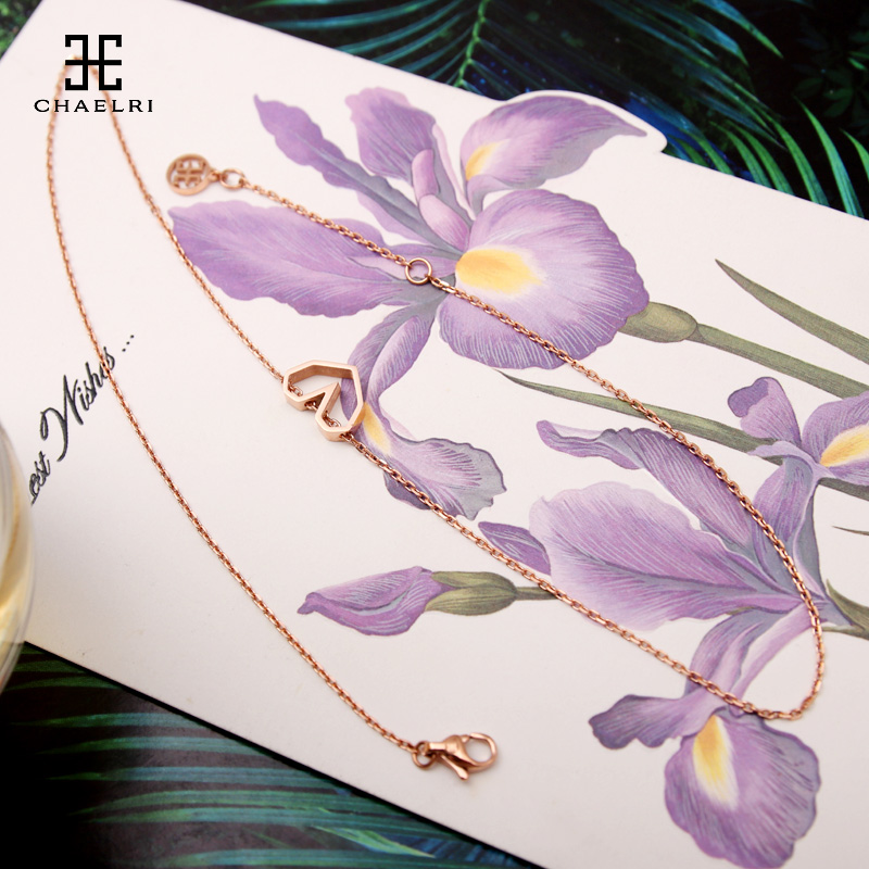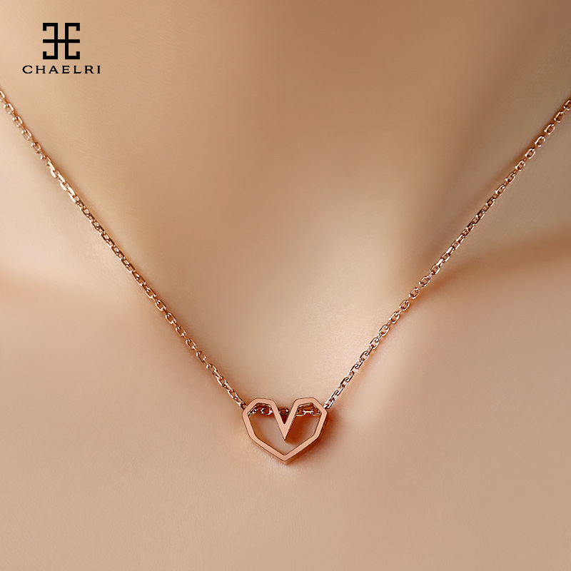 Ranmille hollow love necklace women's collarbone chain simple temperament titanium steel plated 18K rose gold color gold jewelry short