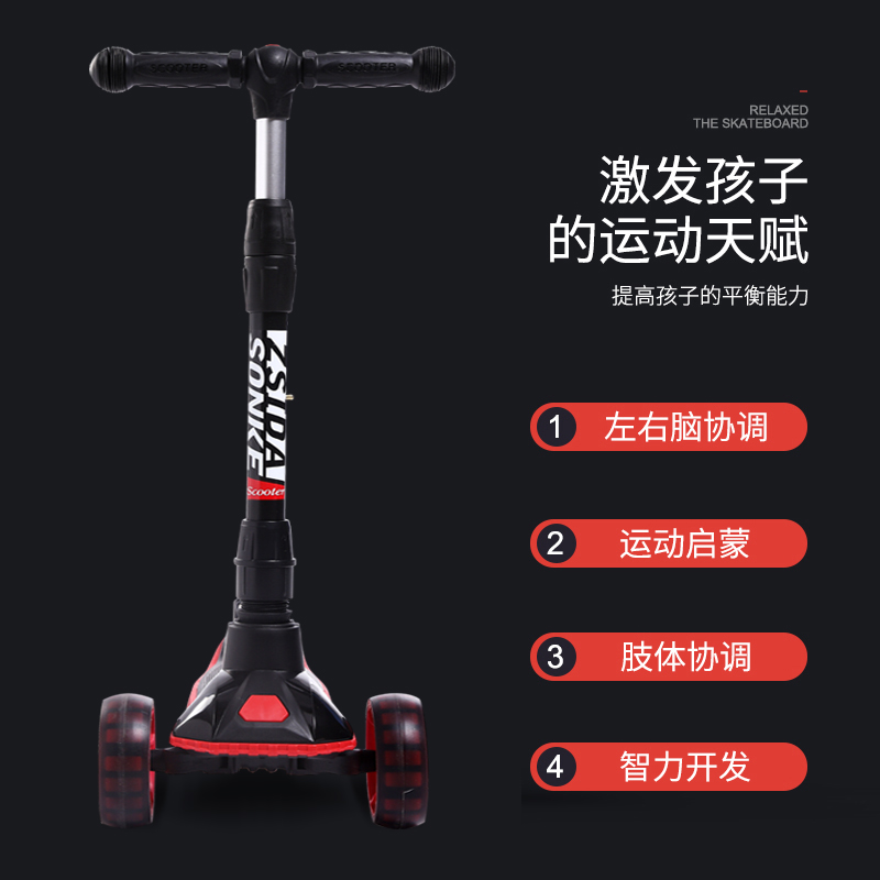 Sunke Children Scooter 1-12-year-old Child Fry 3-Year-6 6-Year-Old Baby Sparkling Four-Wheel Pedal Slide Tackle