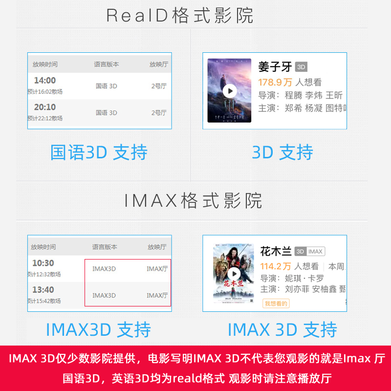 reald Format-Common format(Mandarin 3D, English 3D, etc) Imax format (a few use only for Imax 3D sessions) Reald Format I