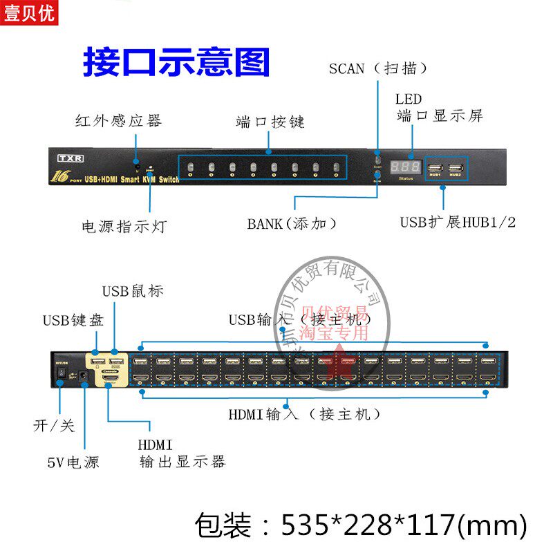 1080 HD 8 Port 16 HDMI-KVM Switcher PC USB Keymouse Monitor Share 16 in 1 out