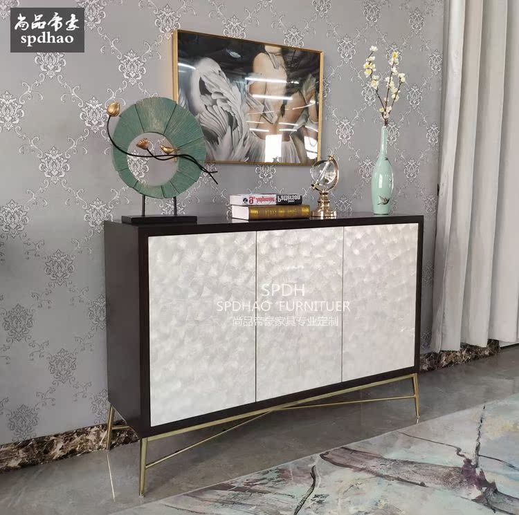 Custom light lavish shell shoe cabinet rear modern minimalist dining cabinet Stainless Steel Feet Black Walnut containing cabinet Decorative Cabinet