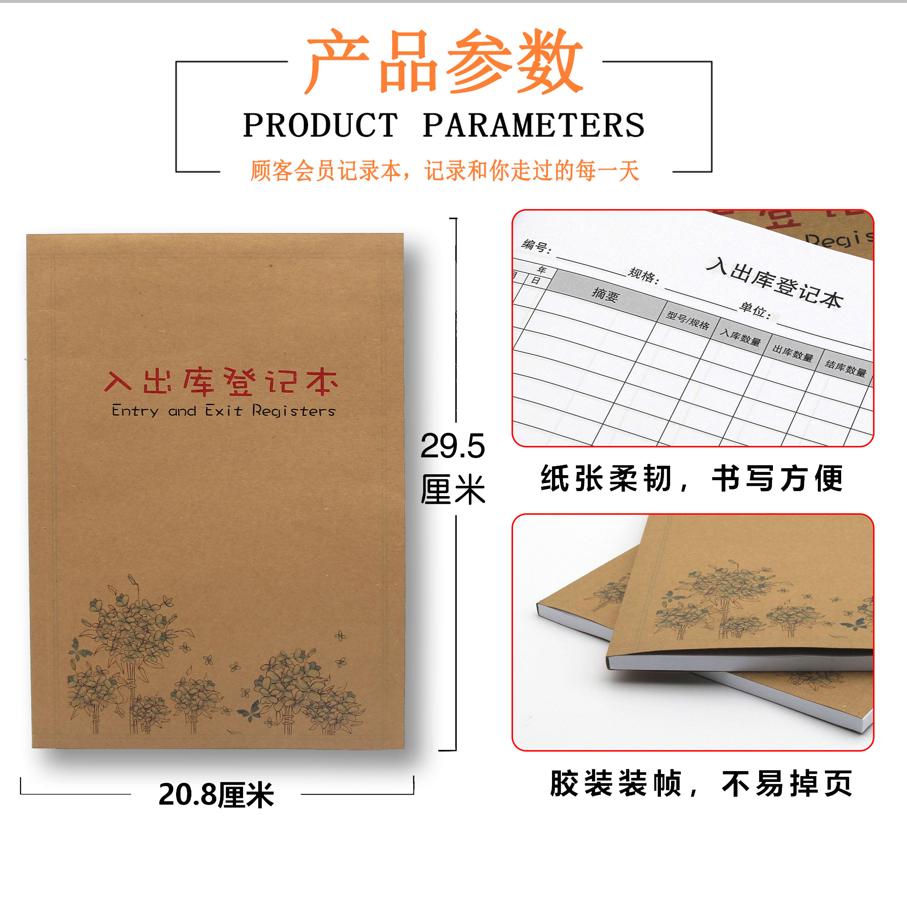 Warehouse entry and exit registration details inventory purchase record book desk account book details custom registration book