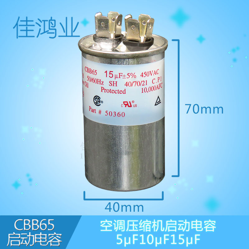 CBB65 Air conditioning compressor start capacitor 5UF 10UF 15UF 450V 15UF